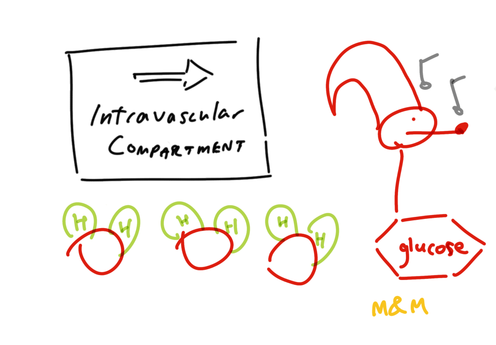 And an aside – there exist the hyperosmolar hyponatremias. Here the pathophysiology is one of needy osmolality where glucose draws water into the extracellular, intra-vascular compartment thereby diluting the present sodium. Other culprits (sometimes presenting as isotonic hyponatremia) are mannitol, and glycine which may be part of irrigation used in TURPs (trans-urethral resection of the prostate) and hysteroscopic procedures.
